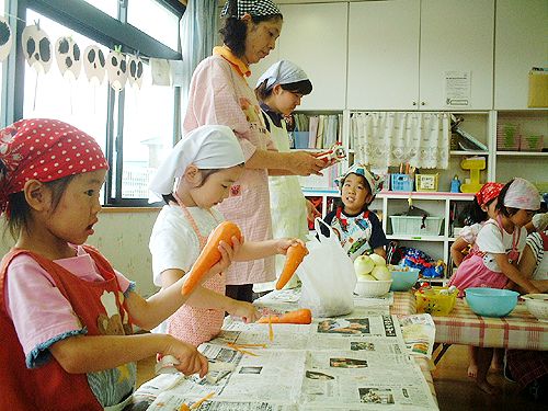 家庭を離れ、先生やお友達と一緒にカレーの材料を買い物したり、料理をしたりしました。じゃがいもの皮むきなどみんな意欲的にできてましたよ。たまねぎを切ったらなぜか涙が・・・いろんな体験ができました。