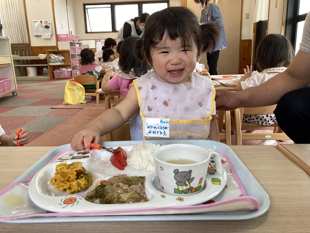 そして給食はランチプレートに名前付きの旗がついていました🏴✨