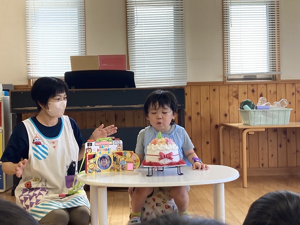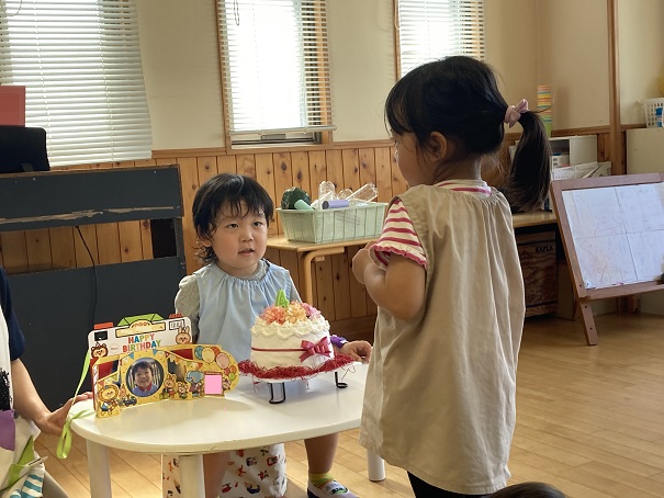 H君の4歳のお誕生日でした。お友達から沢山の「おめでとう!」と「何のケーキが好き?」などの質問をしてもらい、とても嬉しそうでした(*^^*)ハッピーデーでお母さんが参加してくれていたので嬉しさも2倍です♡