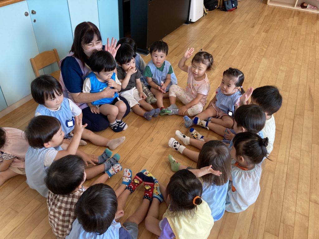 お帰りの前は、たんぽぽミーテングタイムです。今日楽しかったことなどお友達とお話を楽しんでいます。