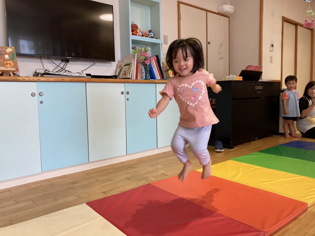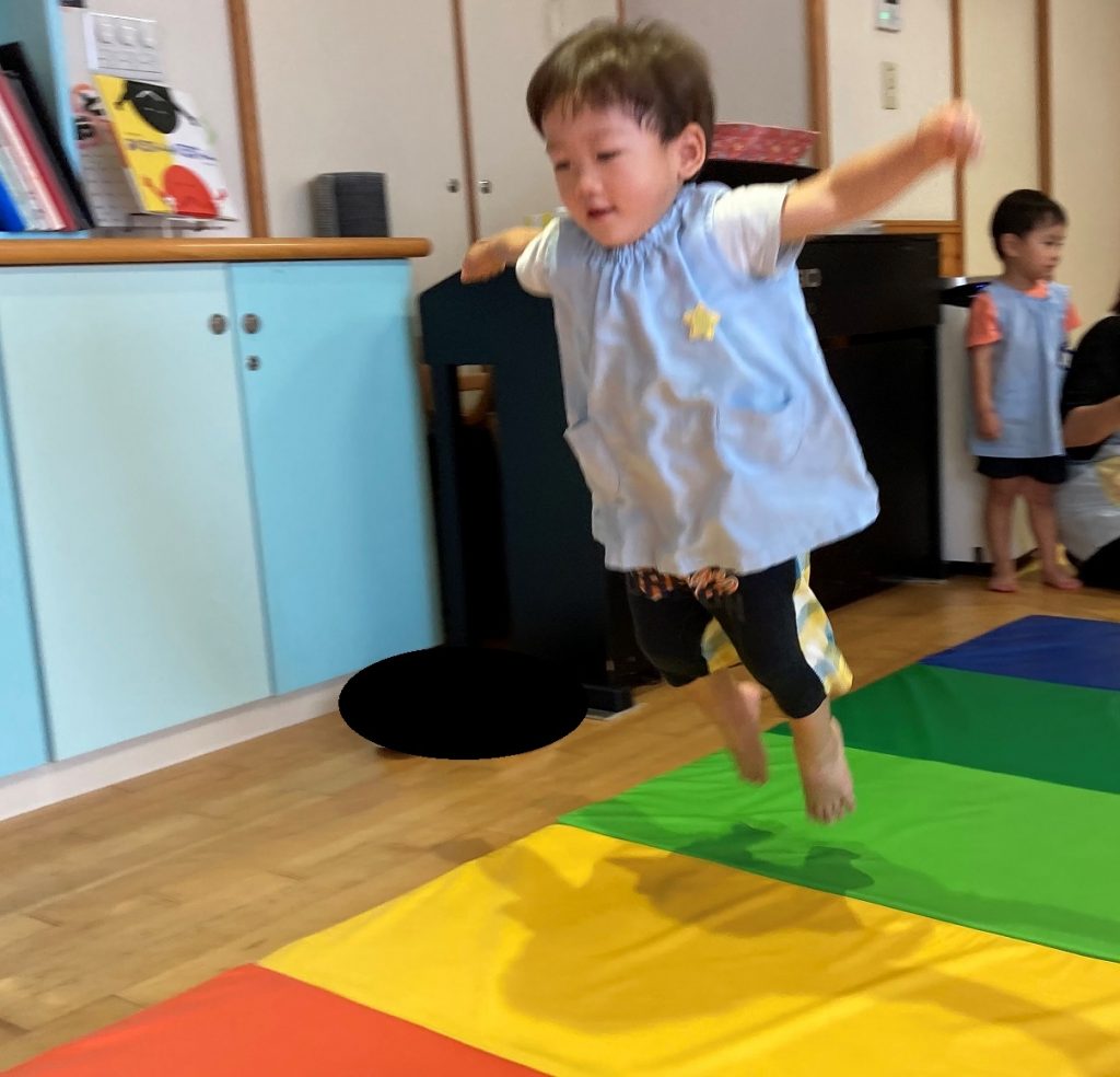 マットの上はジャンプして移動し「忍者に変身」して嬉しそうな子ども達でした。