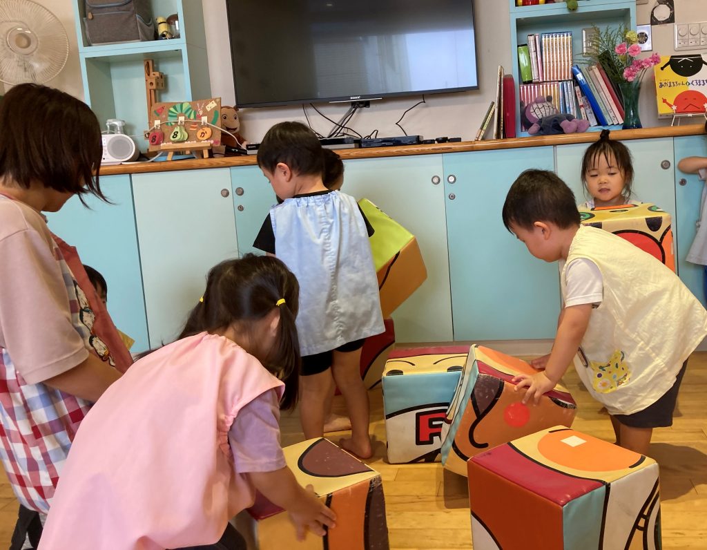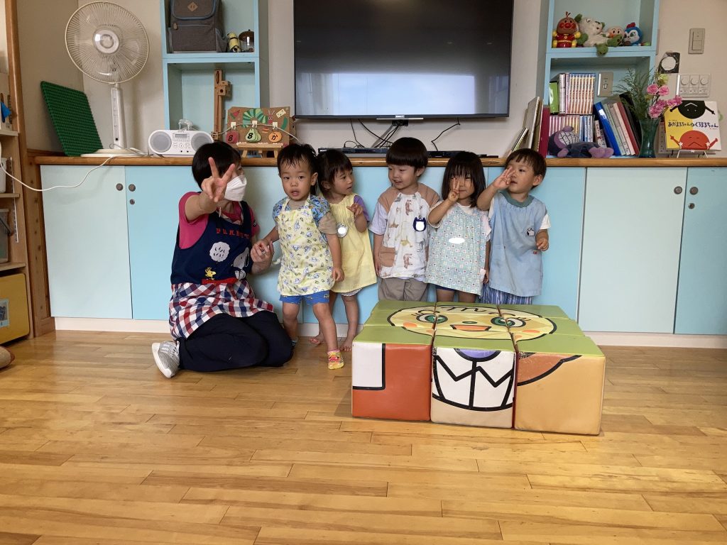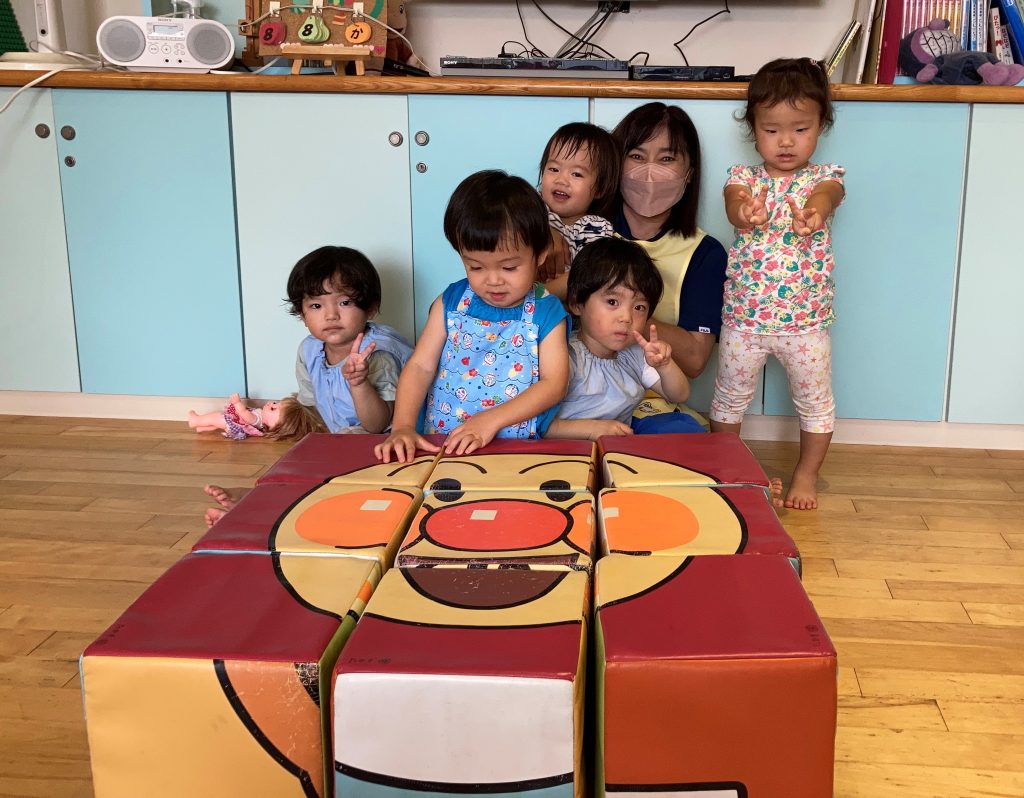 お友達と力を合わせて完成すると「わー。」と手を叩いて嬉しそうな子ども達。「お友達と」の思いが芽生え、色々な遊びを楽しんでいるたんぽぽ組さんです。