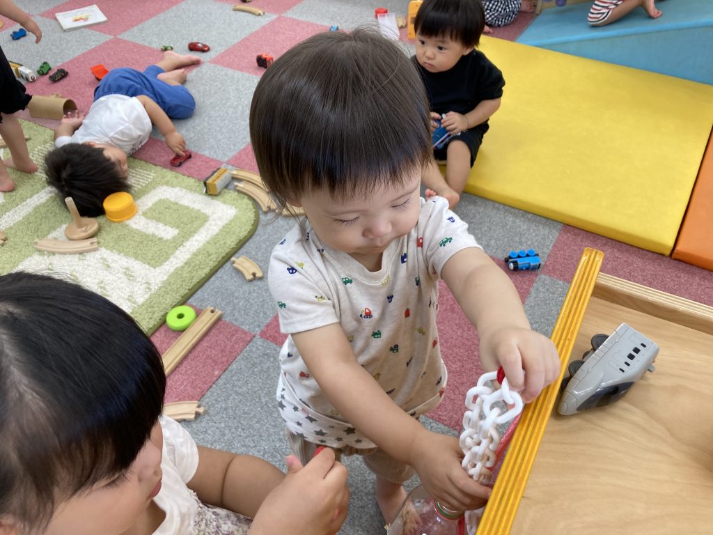チェーンが長いので、なかなか入らず… それでも根気よく挑戦。