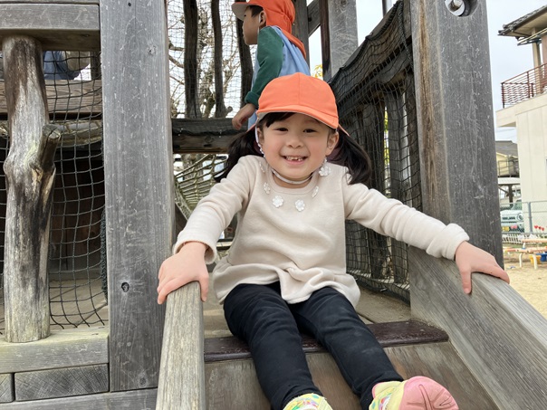 天気の良い日には園庭で友達と元気よく走り回ったり、固定遊具を楽しんだりしています。