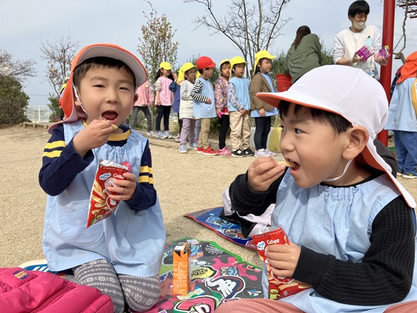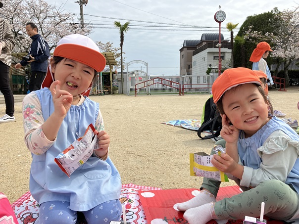 園庭には、満開の桜が咲いていたので、レジャーシートを敷いてお花見🌸