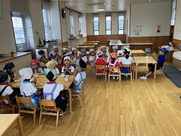 「楽しかった。」「またしたいね。」とお友達や保育士と楽しかった思いを沢山話していた子ども達、五感で感じ色々な思いを味わった子ども達。楽しく食事をすることで、体や心の栄養になると思っています。日々食事を作って貰えることに感謝して、これからも食育活動を楽しんでいきたいと思っています。次は何を作ろうかな?