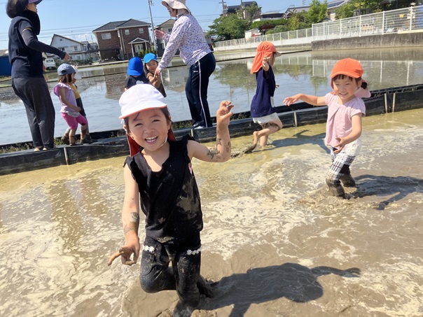 保育士も一緒に田んぼに入り、子どもたちと全力で楽しむことができました😊
