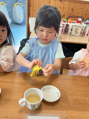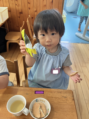 今日は、おやつの袋も自分で頑張って開けてみました!