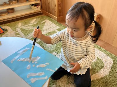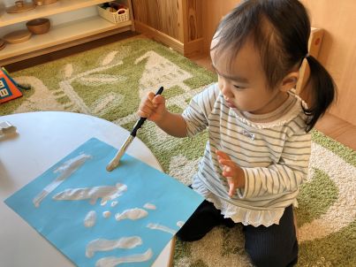 今日は白い絵の具を使って、てるてる坊主を作りました🥰