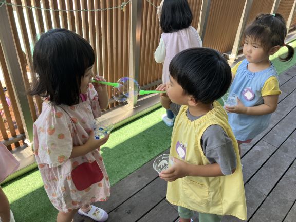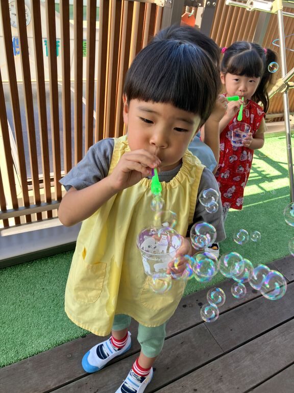 みんな大はしゃぎでしゃぼん玉を楽しんでいました!
