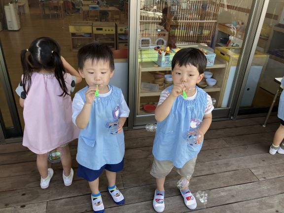 2人でしゃぼん玉を膨らましているお友達もいました(^▽^)/✨