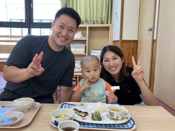 給食は、お誕生日のお友達だけの特別プレート。ジュースとおめでとうのフラッグ付きです。🚩