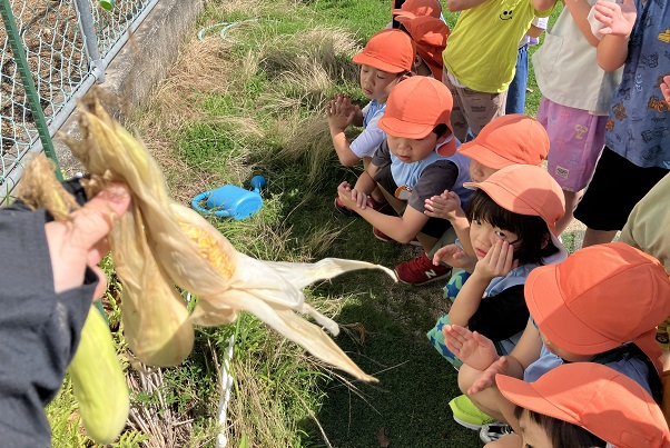 大きさが変わらないまま、トウモロコシのひげが茶色くなったので収穫してました🌽