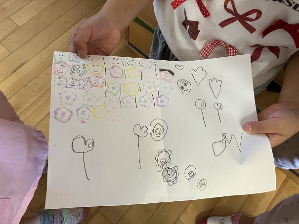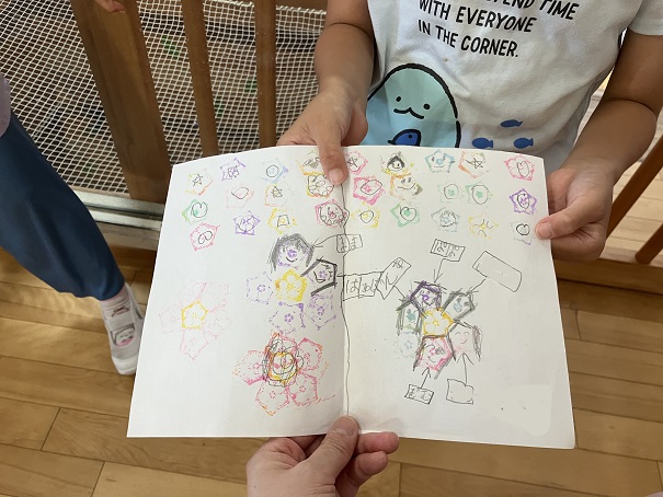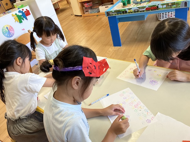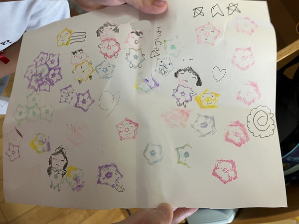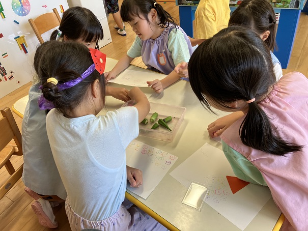 オクラとスタンプ台を置いておくと、早速遊び始めました。