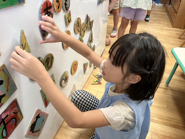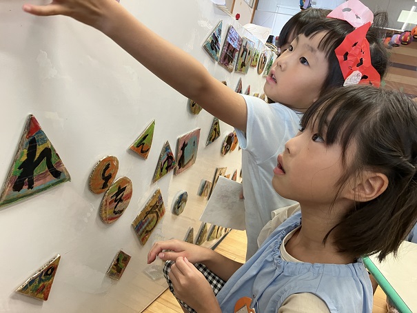 あいうえお表を見に行きながら、少しずつ完成に近づいていきます。