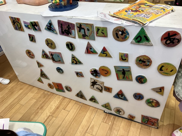 物の名前に並べたり、家族の名前に並べたり、しりとりをしたり、文字に興味をもつきっかけになってくれたらいいなと思います。