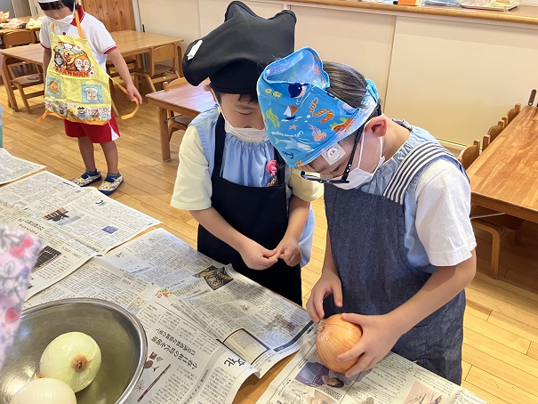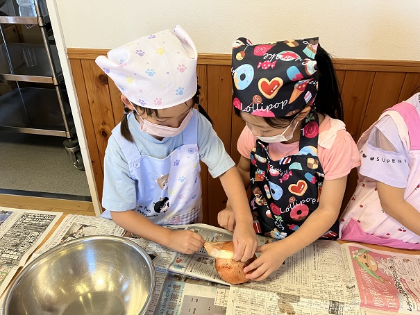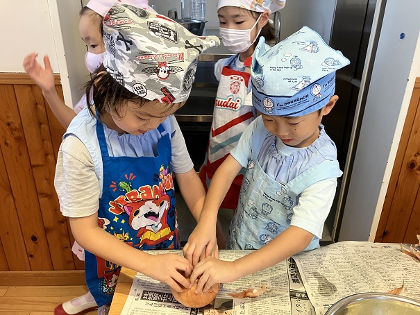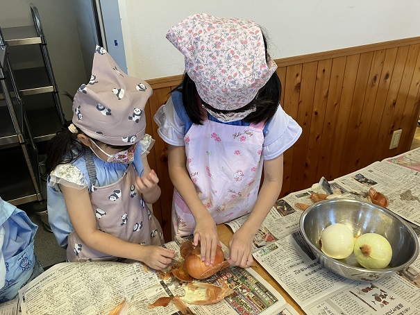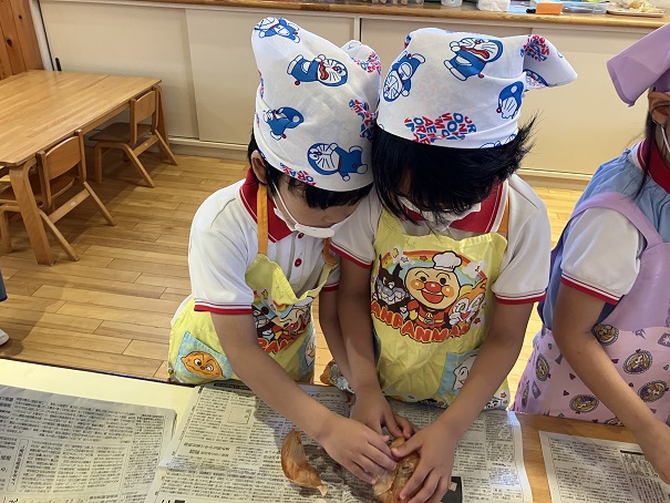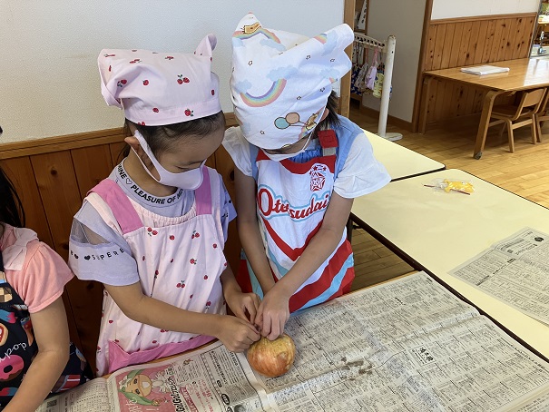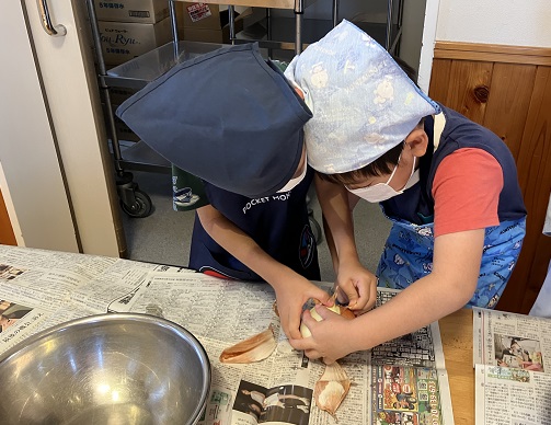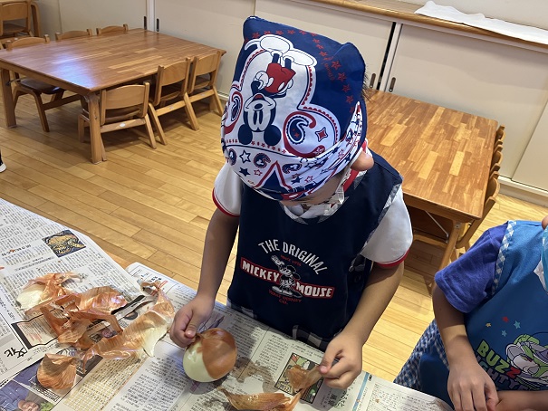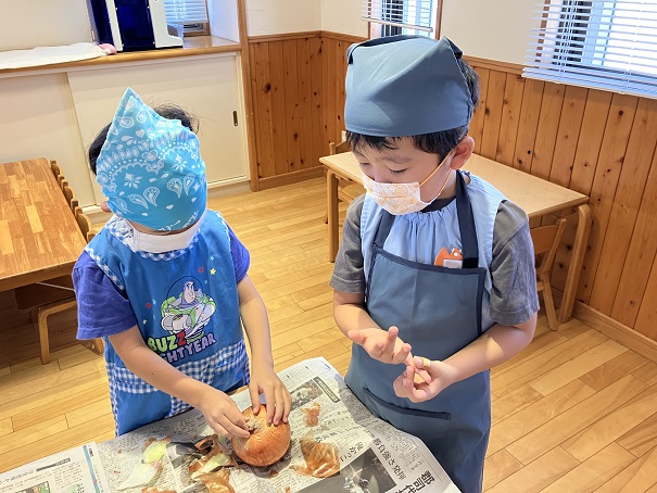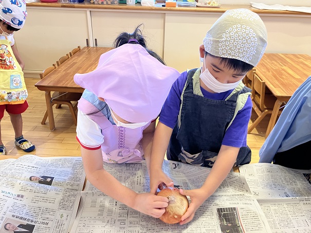「茶色のところは食べれないね」と伝えると、茶色い部分だけ取り除いたり、白いところも一緒にむいたり・・・。