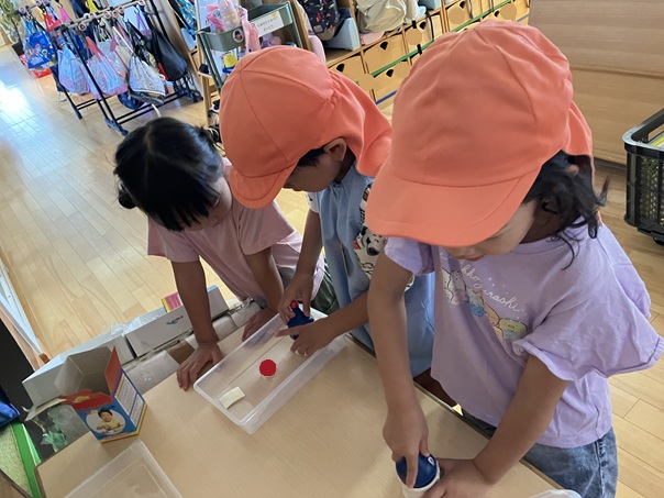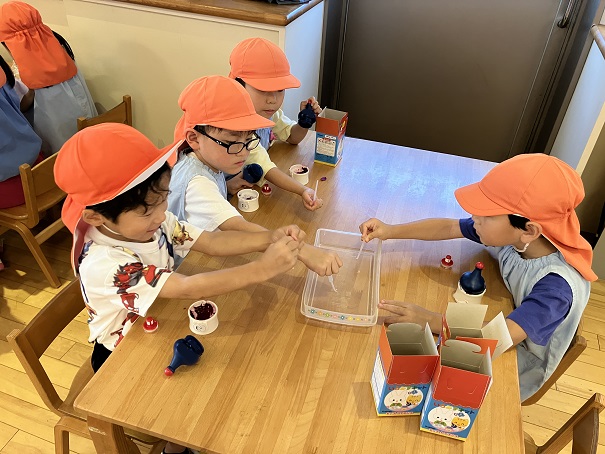 「あれ、色が違う」と友達の色との違いに気付いていた子もいました。