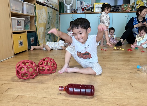 赤色が大好きなHくん。ブロックやボール、色水など、赤色をたくさん集めて「みて~あかだよ」と嬉しそうに見せてくれます。