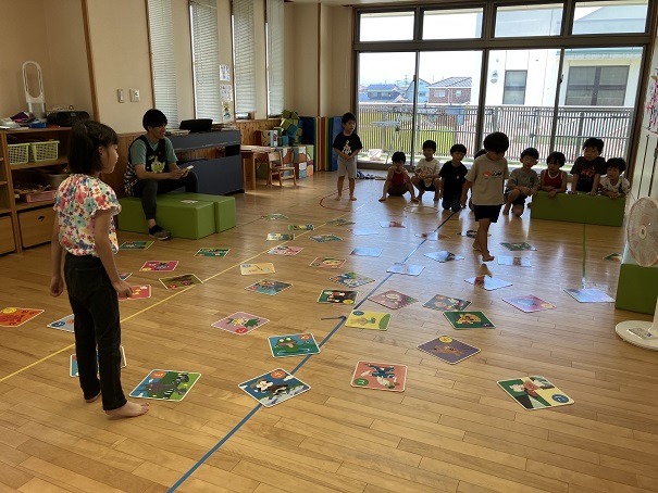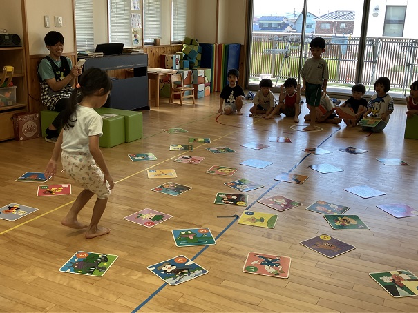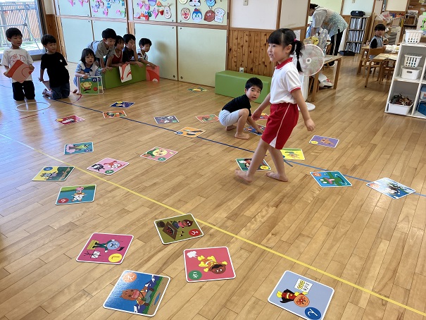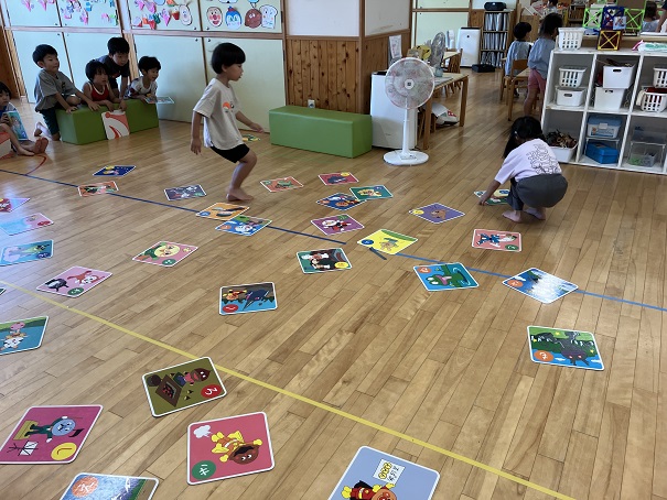 文字への興味・関心がわいている子が多いので、前日にアンパンマンのジャンボかるたをしました。