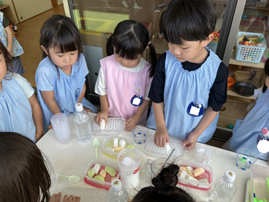 作り方を保育士が知らせると、次に作るお友達に優しく教えている子ども達でした。