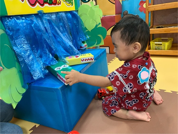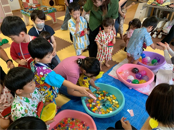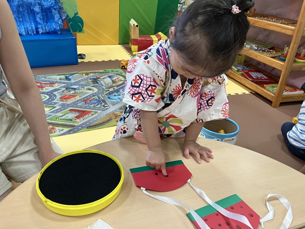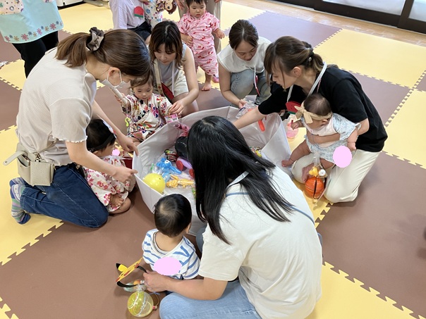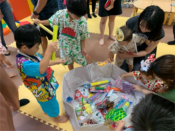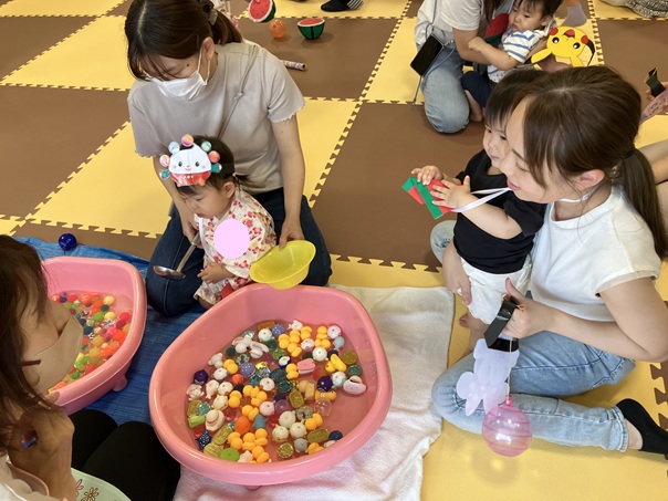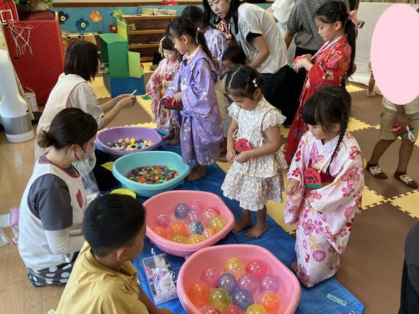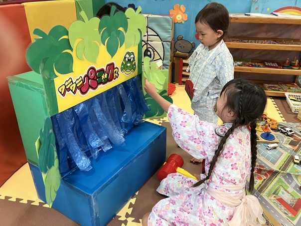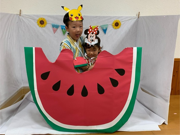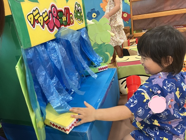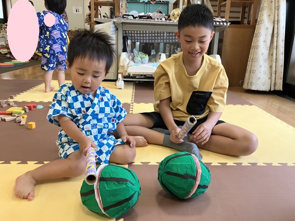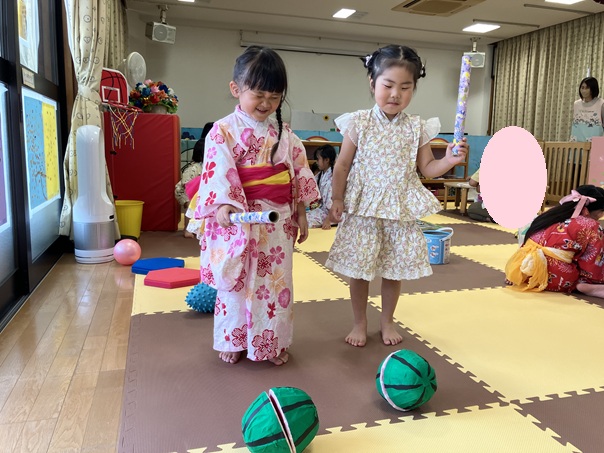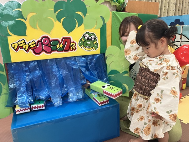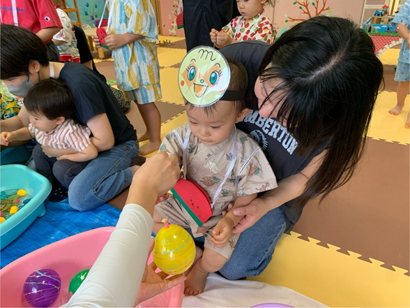 たこ焼きビンゴやワニワニパニック、スイカ割りなども用意し、お母様やお友達と一緒に楽しんでいました😊