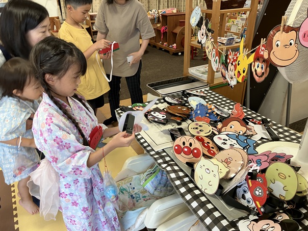 皆さんが楽しみにしていた、スーパーボールすくいやヨーヨー釣り、おめんやさんが開店しました😆