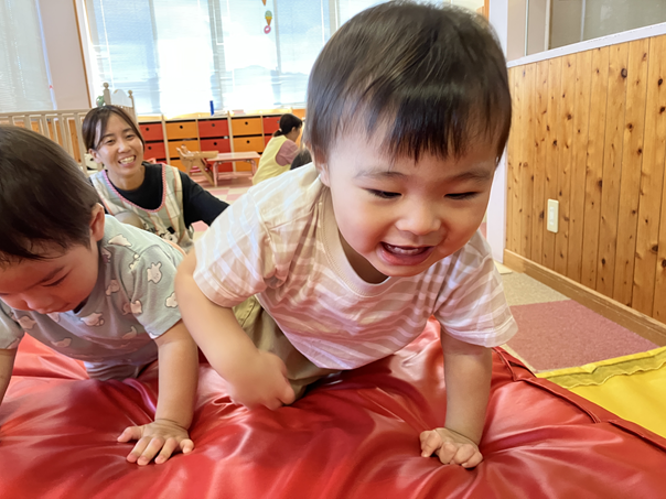 登るだけではなく、寝転んでみたり横向きになって転がったり、感触を楽しんだり様々な楽しみ方をしていた子どもたちでした😆