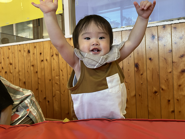 マットのお山ができ、みんなに声をかけると、最初は遠巻きに「ん??」「なにこれ。」のような表情をしていましたが、少しずつ距離が縮まり、最終的には山の上を行ったり来たり、何度も挑戦する姿がありました✨