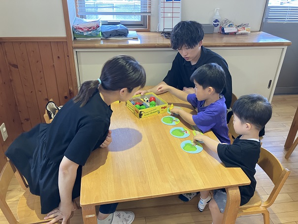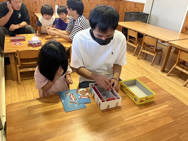 1部は、2歳児と3歳児を対象にボードゲームで遊びました。