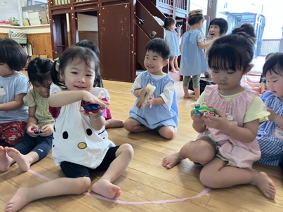 これからも、いろいろな曲を歌い、振りをつけ、リズム遊びへとつなげていき、音楽🎵を字のごとく“音”を“楽しんで”いきたいと思います。