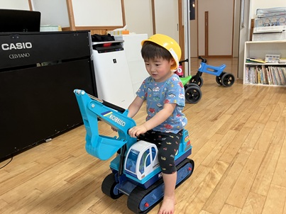 乗り物大好きで、安全運転開始!ヘルメット姿が似合っています😄