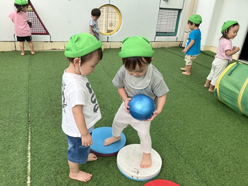 ボールを投げたり蹴ったり、転がして追いかけたり。様々な遊びを楽しんでいました。