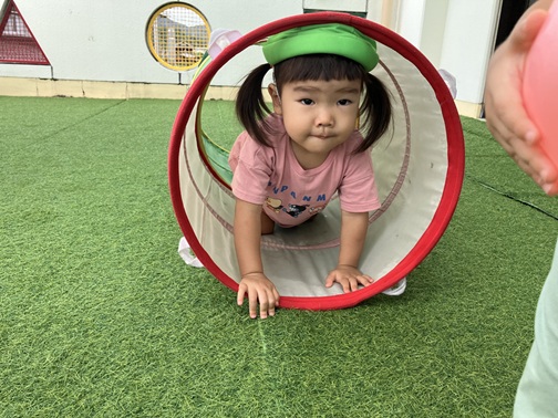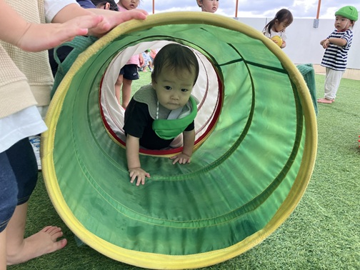 今日はベランダで遊びました!室内遊びが多かったので外に出ることに大喜びの子どもたちでした!!