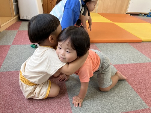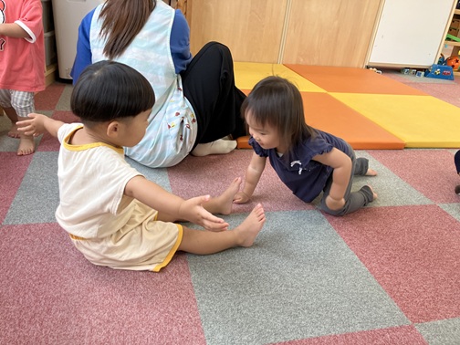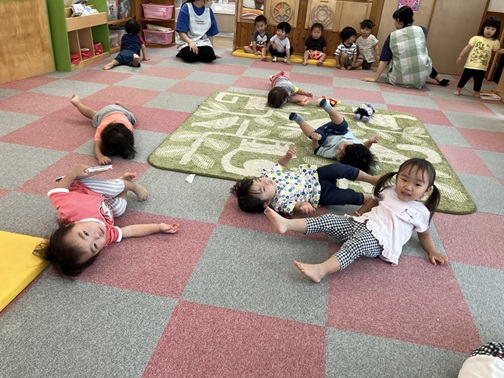 広いお部屋をみんなでごろごろ~友達に当たってしまう子もいましたが、それさえも楽しくみんなニコニコでした☺