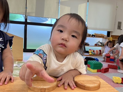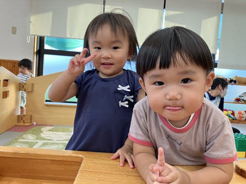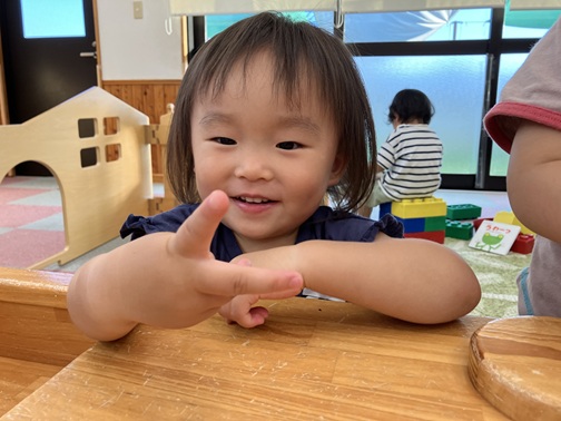 「せんせー、に、できん」というKちゃん。保育士が少し指を動かし手伝うと「2」ができ、嬉しそうにしていました。