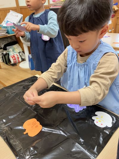 今日は、ハロウィンに向けて制作活動を楽しみました。