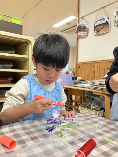 バック作りでは、油性ペンを使って自分のオリジナルバックを作りました💗