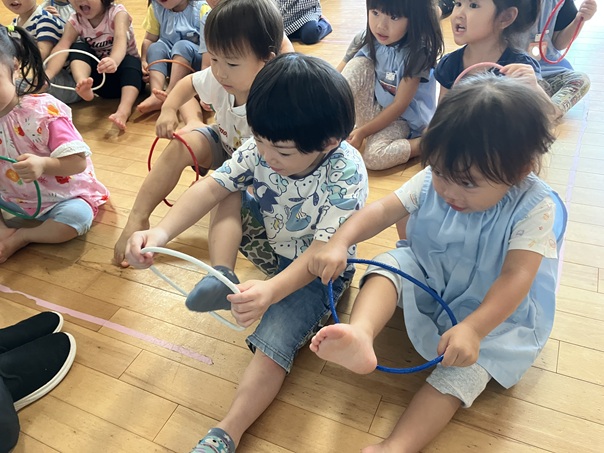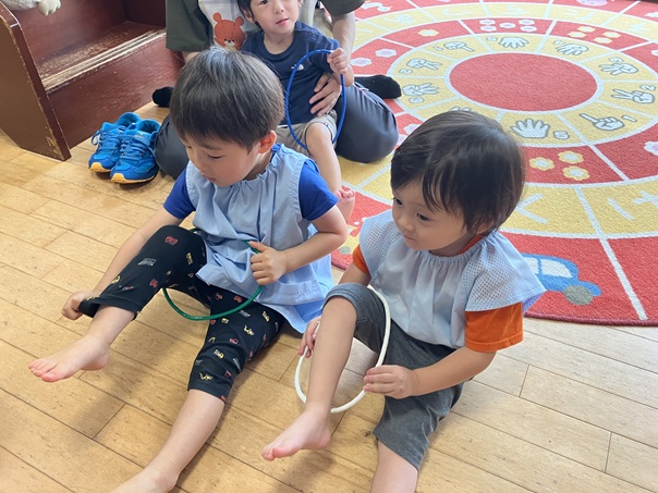 今日はお部屋でリトミック🎵保育士が研修会で学んだことを実践しました🤗