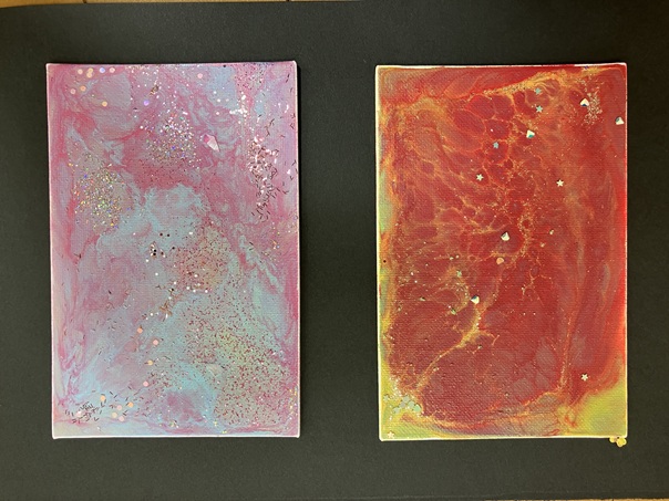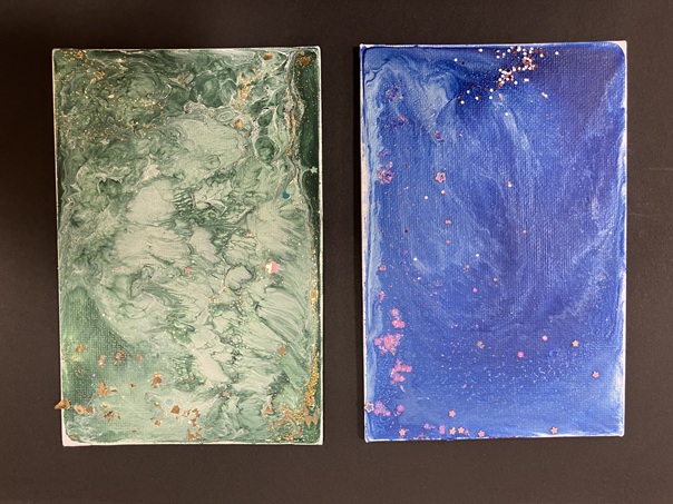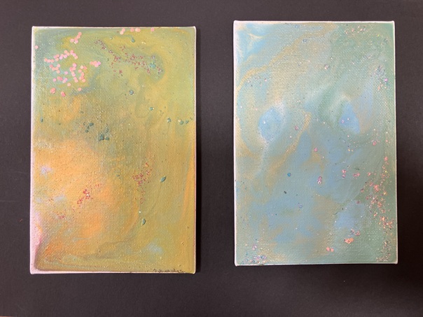 フルイドアートとはアクリル絵の具を使って偶発的に発生する模様をキャンバスの上で表現するものになります😊