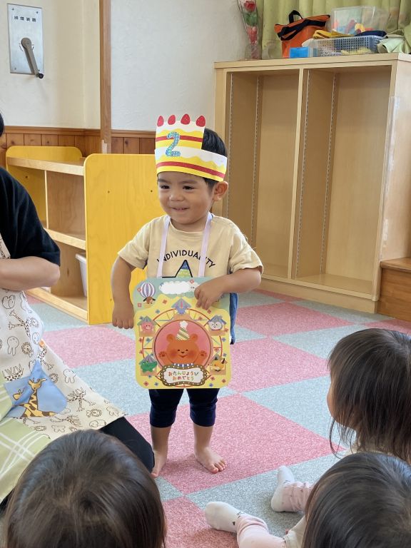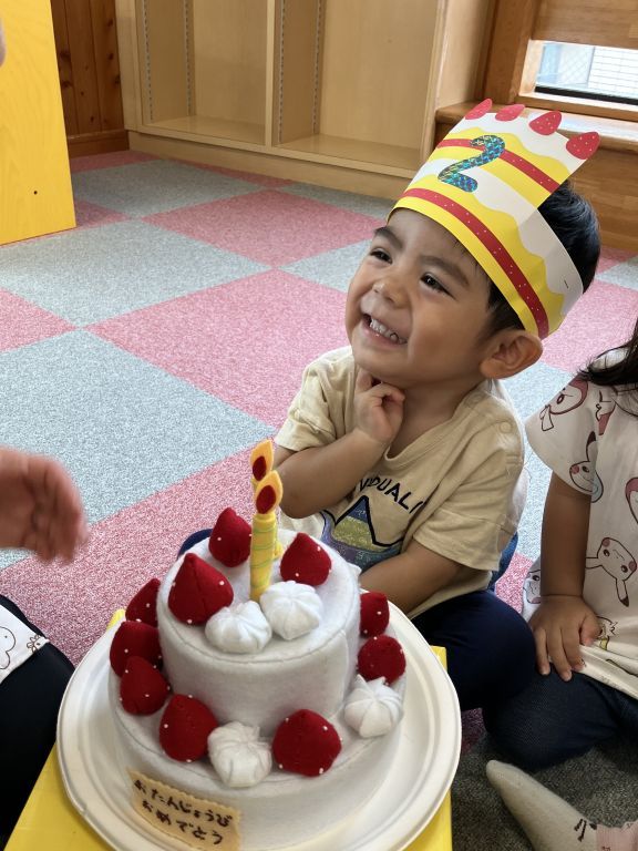 お誕生日の歌を歌ってもらったり、お友達や保育士に「おめでとう!」とたくさん言ってもらったりしていました🎉