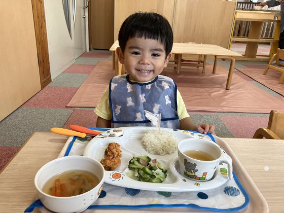 給食は、お誕生日のお友達だけの特別プレートです。ジュース付きです😍