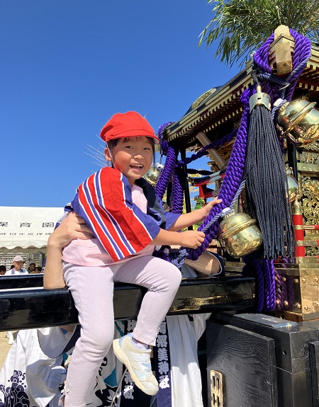 御神輿がぐるぐるまわされると、「神様乗ってるのにかわいそー」と言う声がきこえてきました。