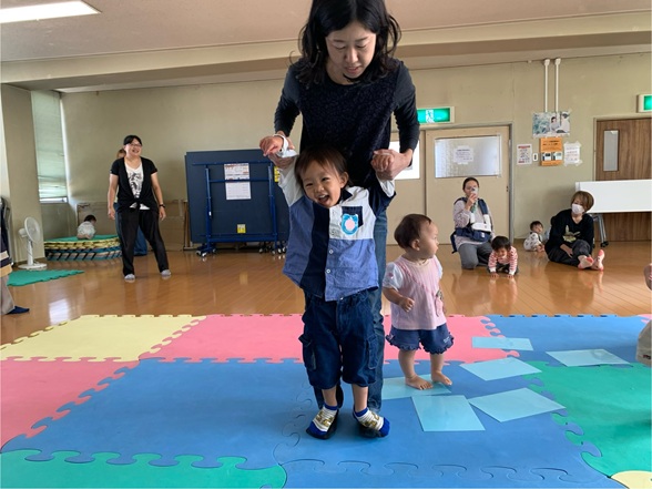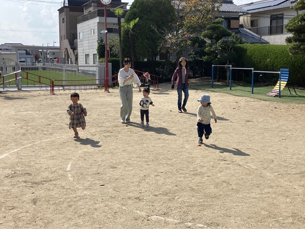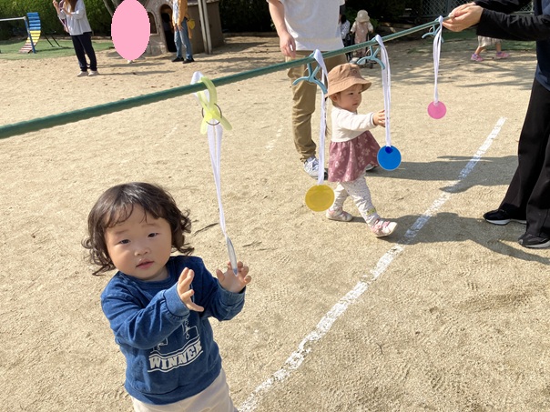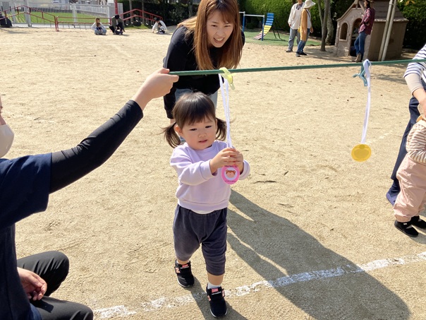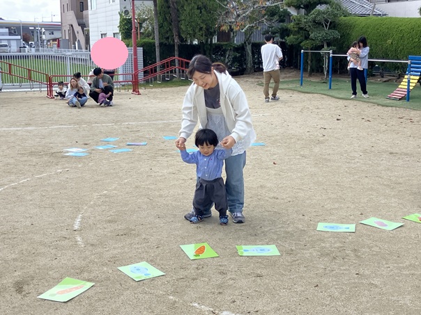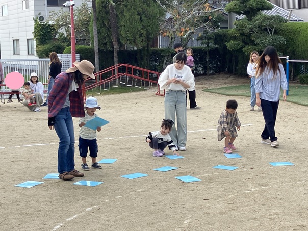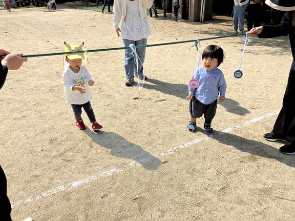 10月後半のふれあい広場と園庭で、運動会ごっこを行いました😊
