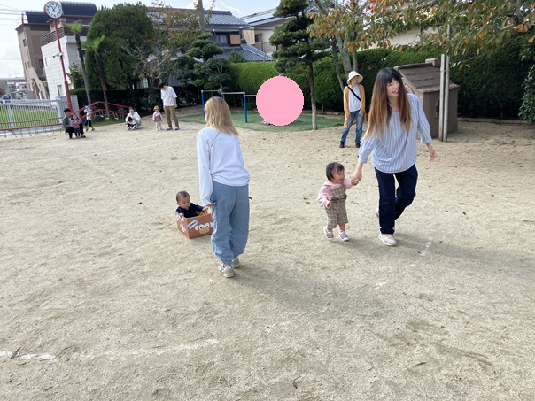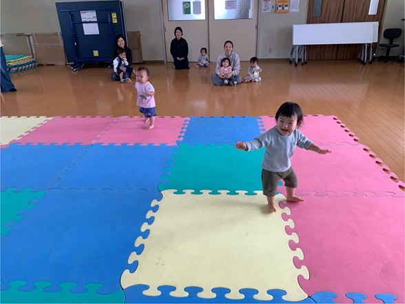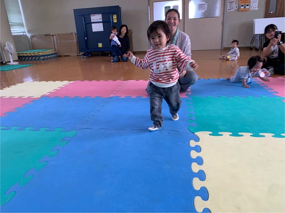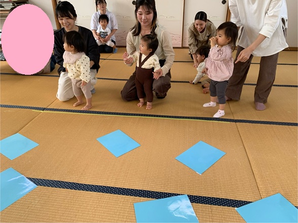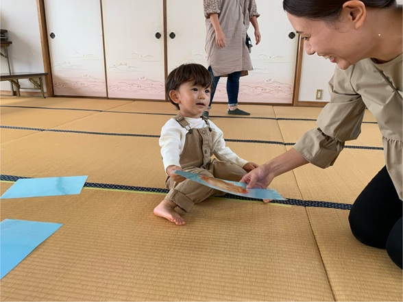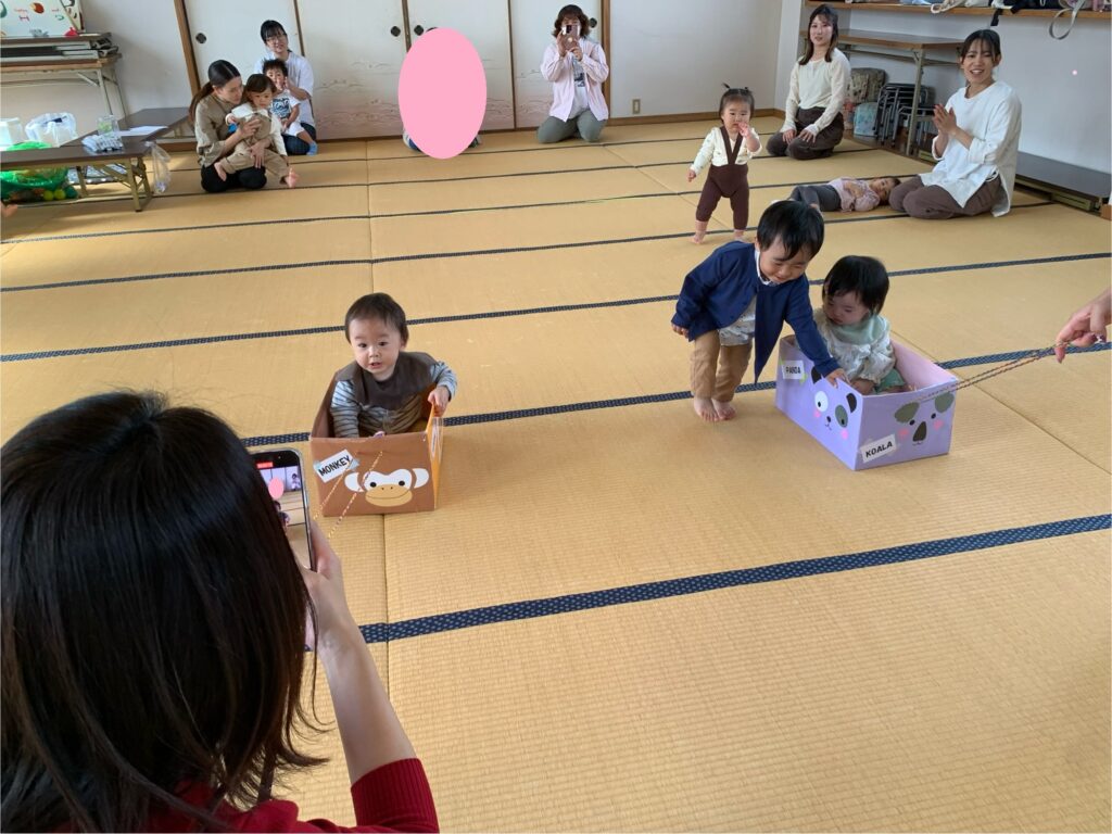 ハイハイのお子様にはダンボールカーを用意し、お母様に引っ張っていただきました😆✨