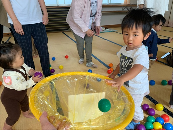 頑張ってボールをたくさん拾って、上手に入れてくれました😍