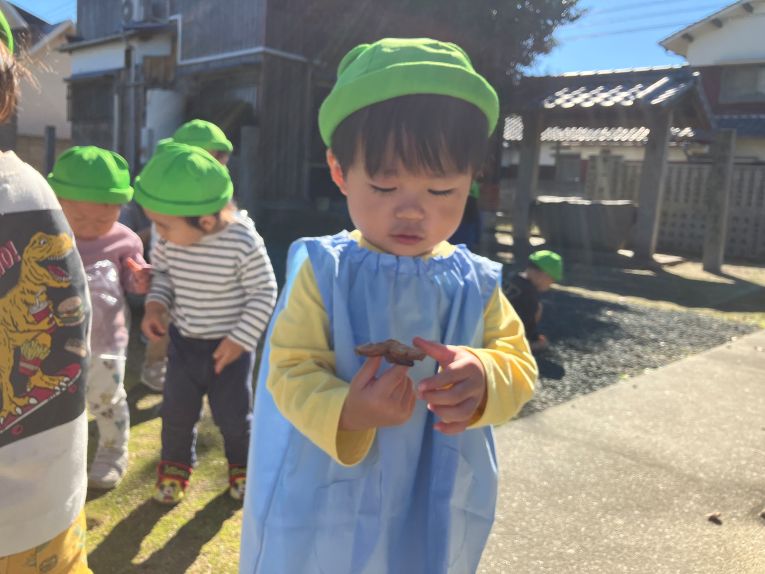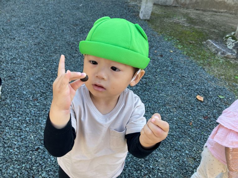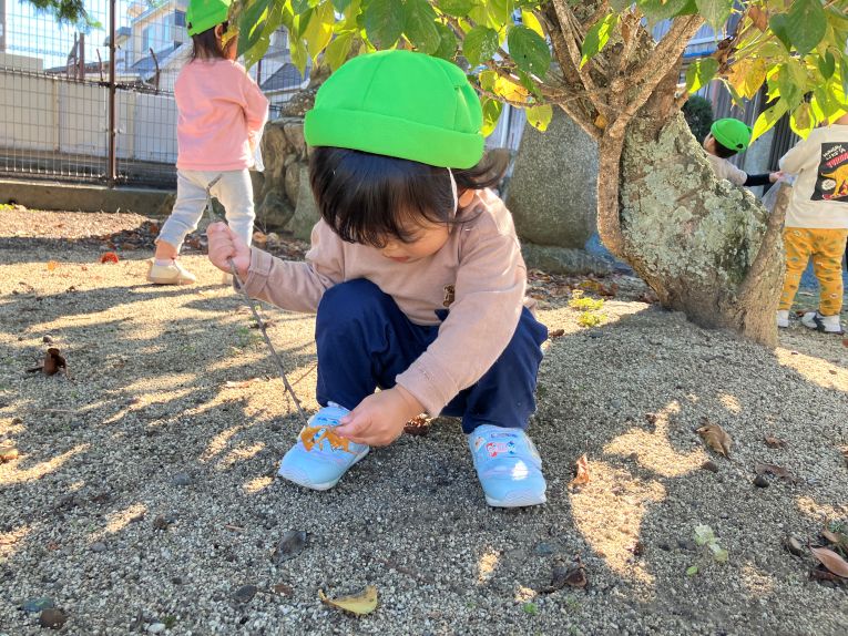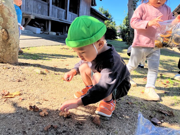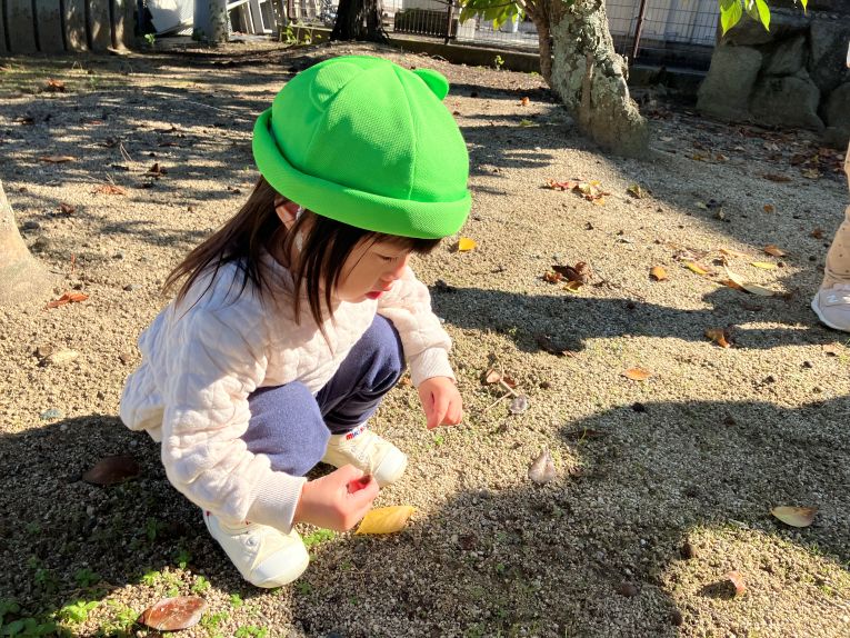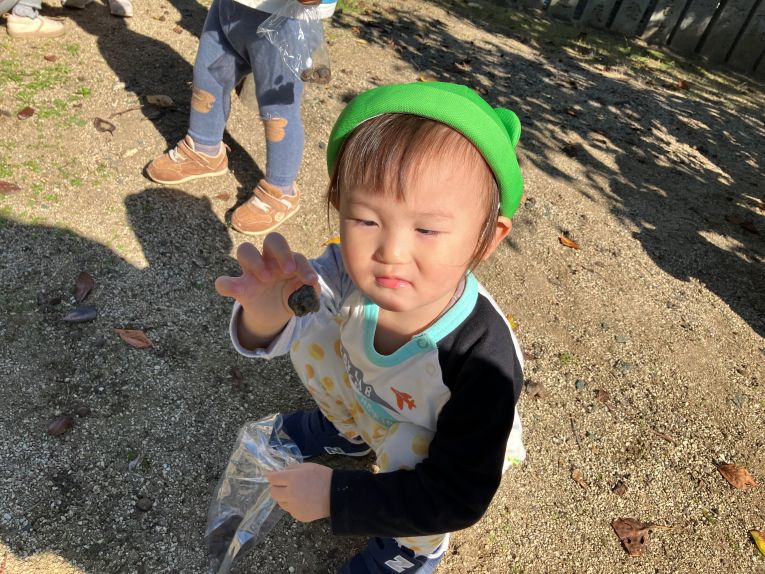 椿の実や落ち葉を見つけると、嬉しそうに保育士に見せてくれました😊