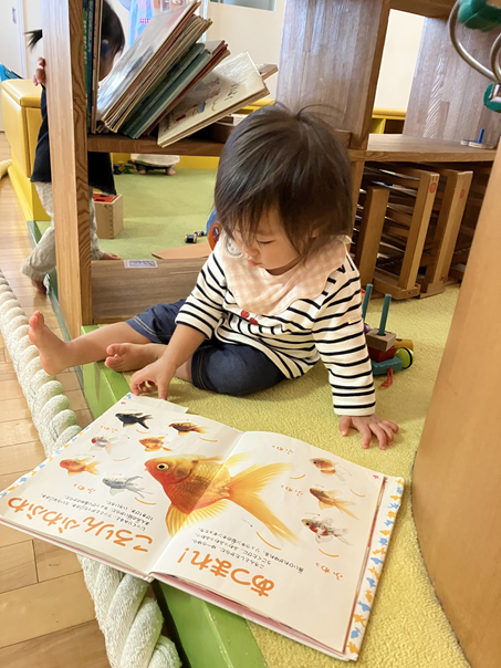 絵本好きの子は、絵本をみていたり、積み木が好きな子は、積み木で遊んだり。