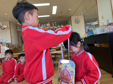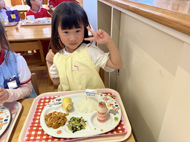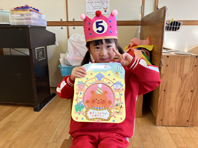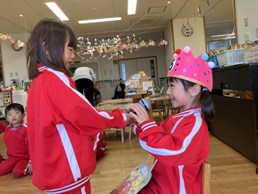 園内放送が流れるとお友達に「おめでとう」とお祝いされ嬉しそうでした。