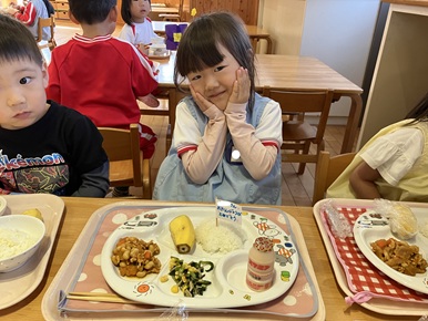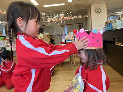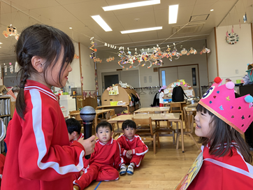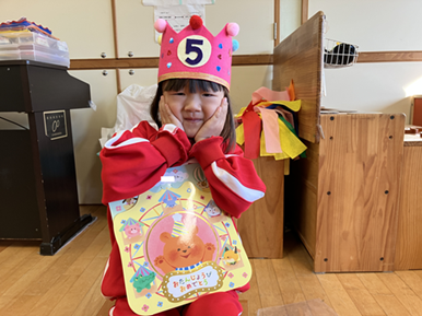 園内放送が流れるとお友達に「おめでとう」とお祝いされ嬉しそうでした。